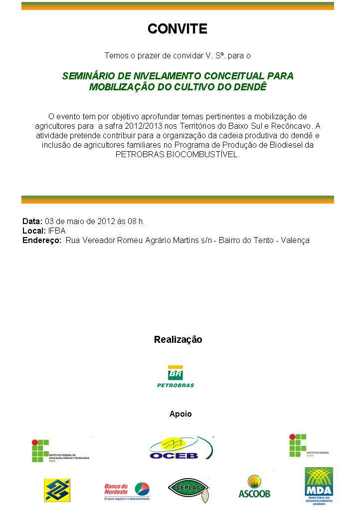 Semunário de Nivelamento conceitual para mobilização do cultivo do dendê